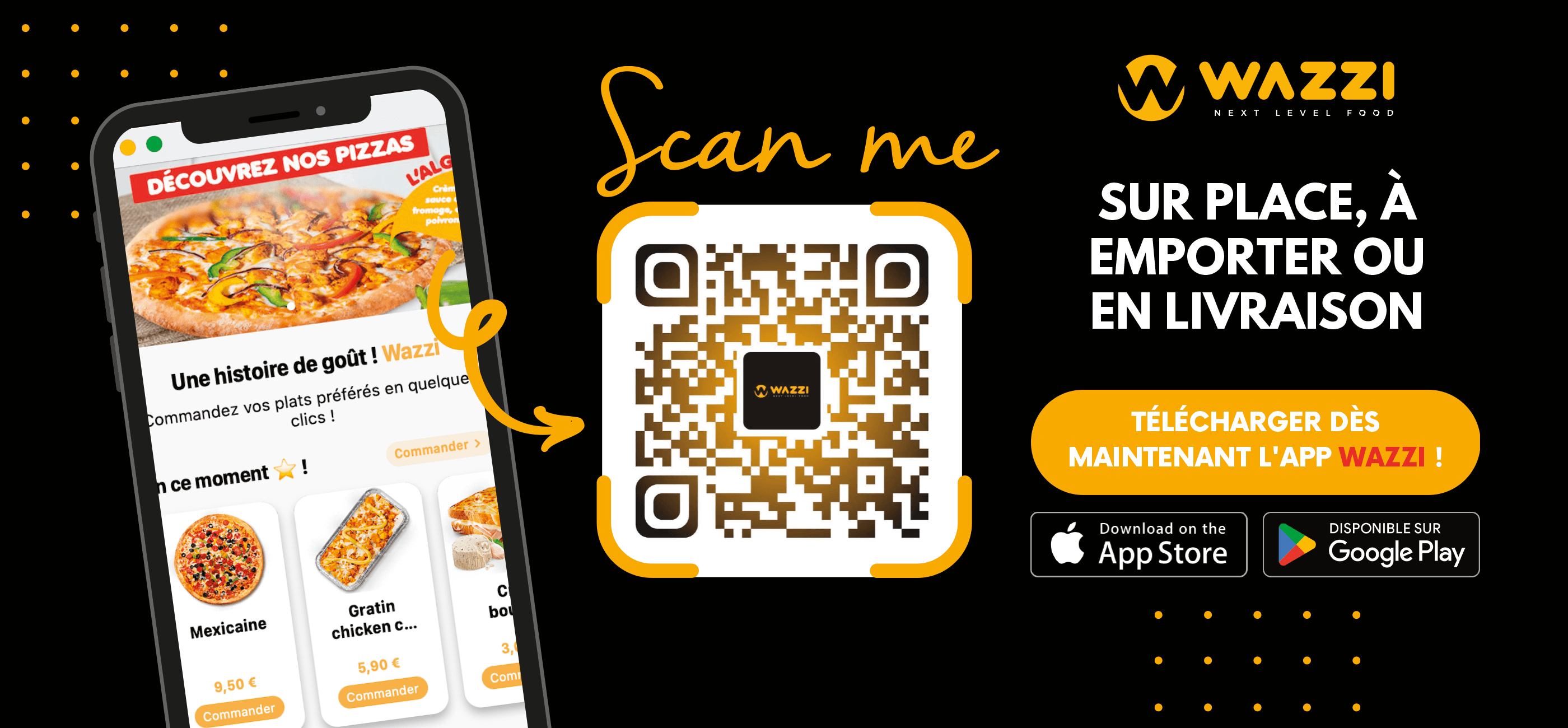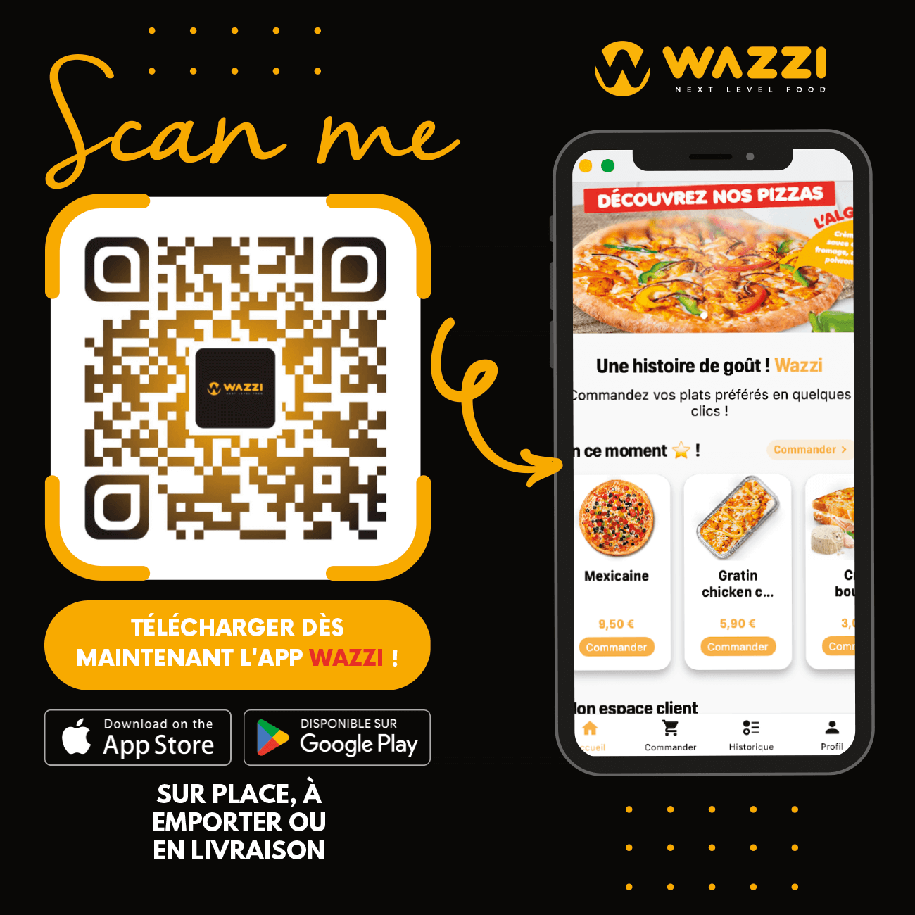 WAZZI est spécialisé dans la restauration à domicile et à emporter depuis 2007 avec une expérience de 14 ans, et plus particulièrement dans la préparation de pizza.